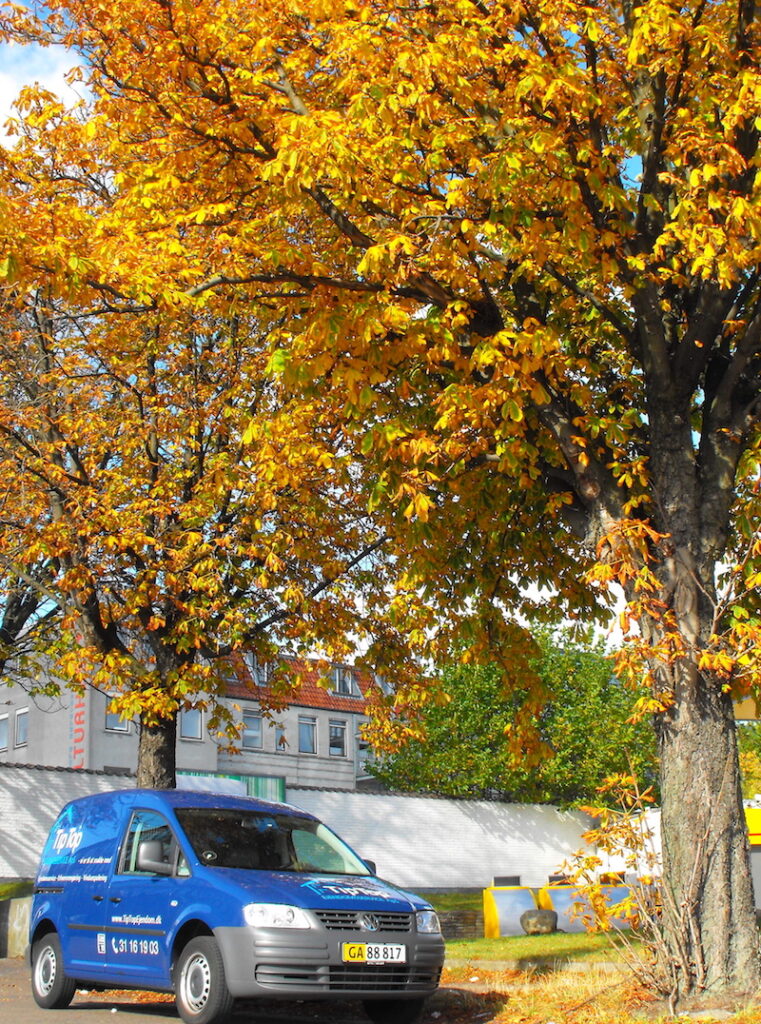 Bladene falder, flyver rundt og bunker sig op blæst sammen affald fra veje og fortove. Det skal holdes nede. Samtidig er efteråret den bedste tid til beskæring af jeres træer, fældning af træer, samt sætning af blomsterløg og vækster. Græsplænen kan tilsættes kalk for at mindske mosvækst til foråret. Jeres udendørs område kommer til at stå flot og indbydende til foråret.